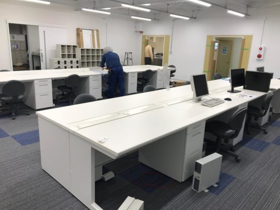 2019/11/08 機械販売 事務所を新築 ナイキ製什器 デスク、チェアー等 19セット ご提案内容 <納入実績> 先日、事務所を新築されたお客様へ ナイキ製什器を納入させていただきました。 デスク チェアー 19セットは ナイキからの手配業者によりその場で組み立てしました。 素早く綺麗な作業をしてくださり感謝しております。 何よりこれだけの物を購入して頂いたお客様にはもっと感謝しております。 実績紹介一覧はこちら