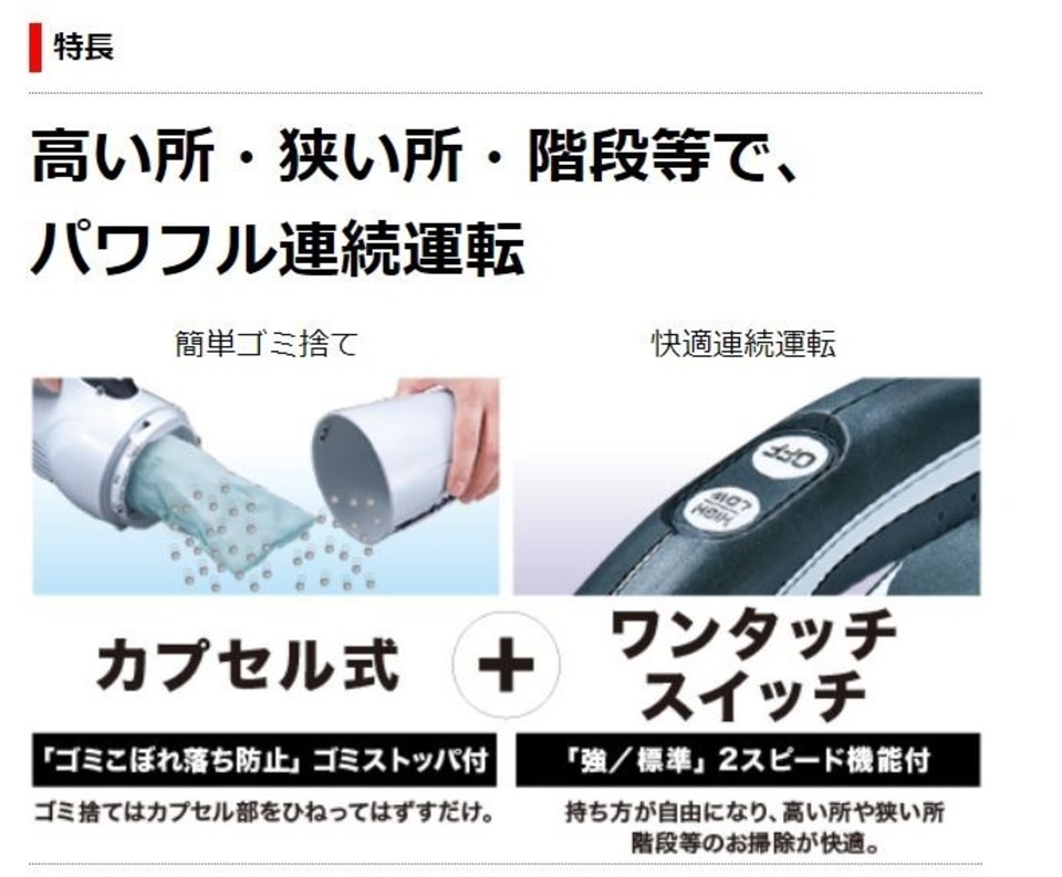 18Vの電池を使用した強力吸引の物で女性でも軽く持てると言う点にこだわりました。