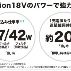 ・吸込み仕事率:新基準=37/10W (強/標準)(標準付属品の高機能フィルタ使用時)※1、新基準=42/15W(強/標準) (別販売品のフィルタ使用時)※1、