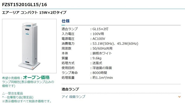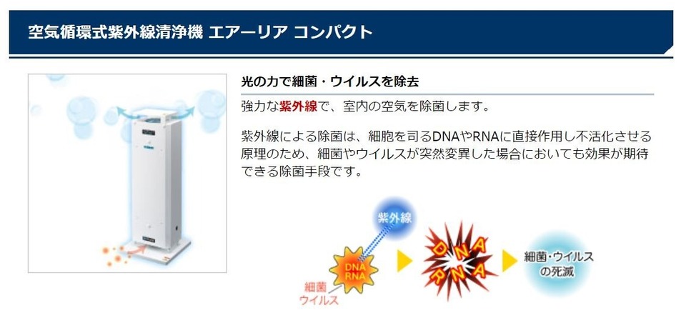 コロナ対策 岩崎電気 紫外線除菌、抑制 「エアーリア」