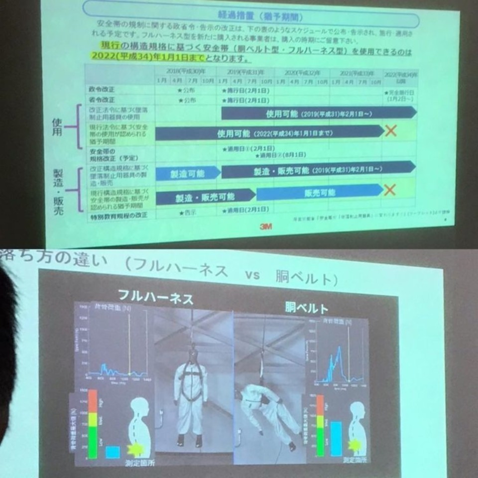 2019/11/09 お知らせ <社内研修> 3M フルハーネス・ランヤード 改正労働安全衛生法施行令の施行について 社内研修を実施しました。 作業者の安全向上につながる知識の習得ができました。 内容は以下の通り 『3M フルハーネス・ランヤード 墜落防止ソリューション 2019年2月に改正された、労働安全衛生法施行令 高所作業ではフルハーネス着用が原則について』 ご用命お待ちしております。 更新情報一覧へ戻る