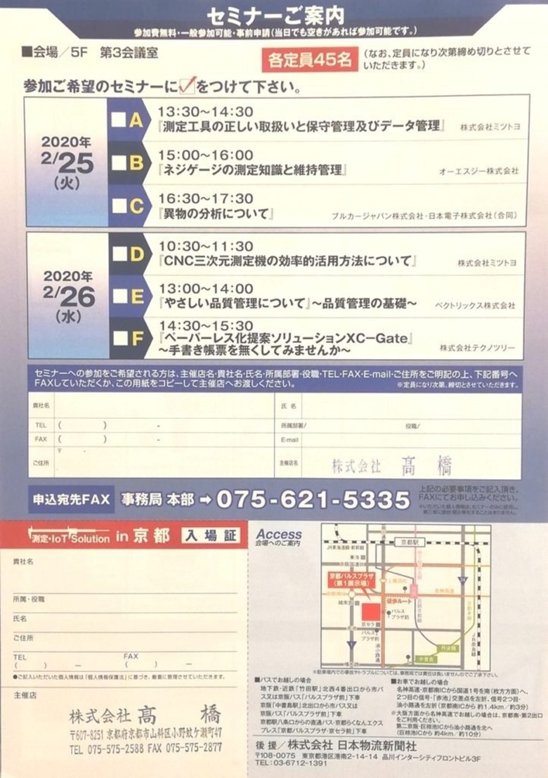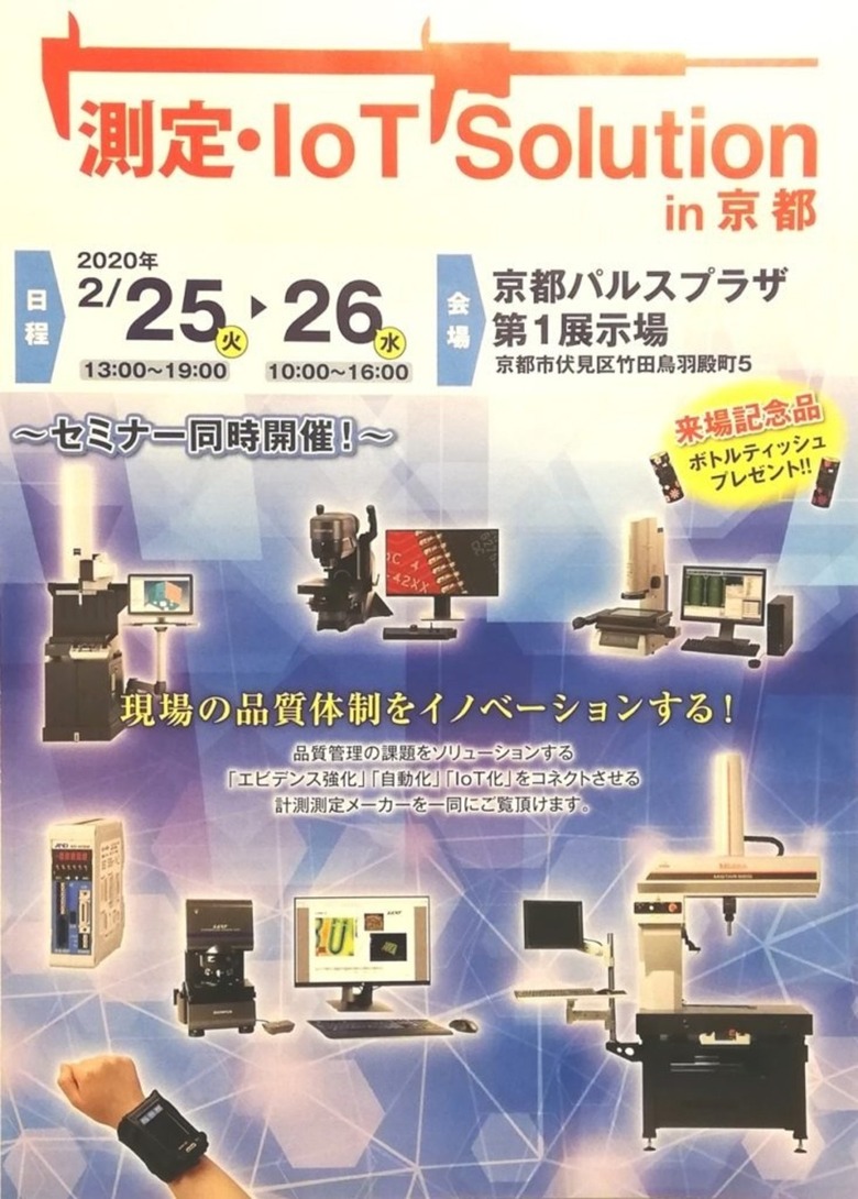 2020/02/11 お知らせ 2020 測定・IoT Solution展 in 京都 2020 測定・IoT Solution展 in 京都 2/25 , 2/26 開催されます。 測定・計測・IOTを代表するメーカーが一同に集いセミナーや展示と楽しんでいただけます。 入場料は無料です。また来場記念品としてボトルティッシュが貰えます。 更新情報一覧へ戻る