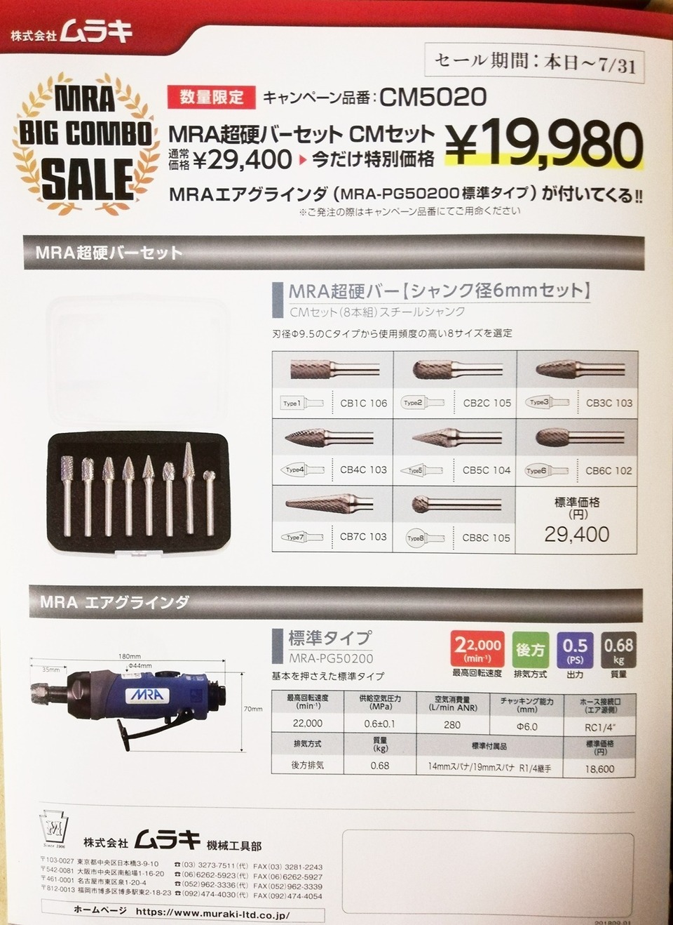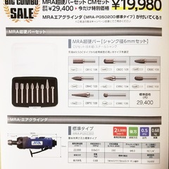 通常¥29400が特価¥19980でご提供、更にエアグラインダまで付いてきます。
