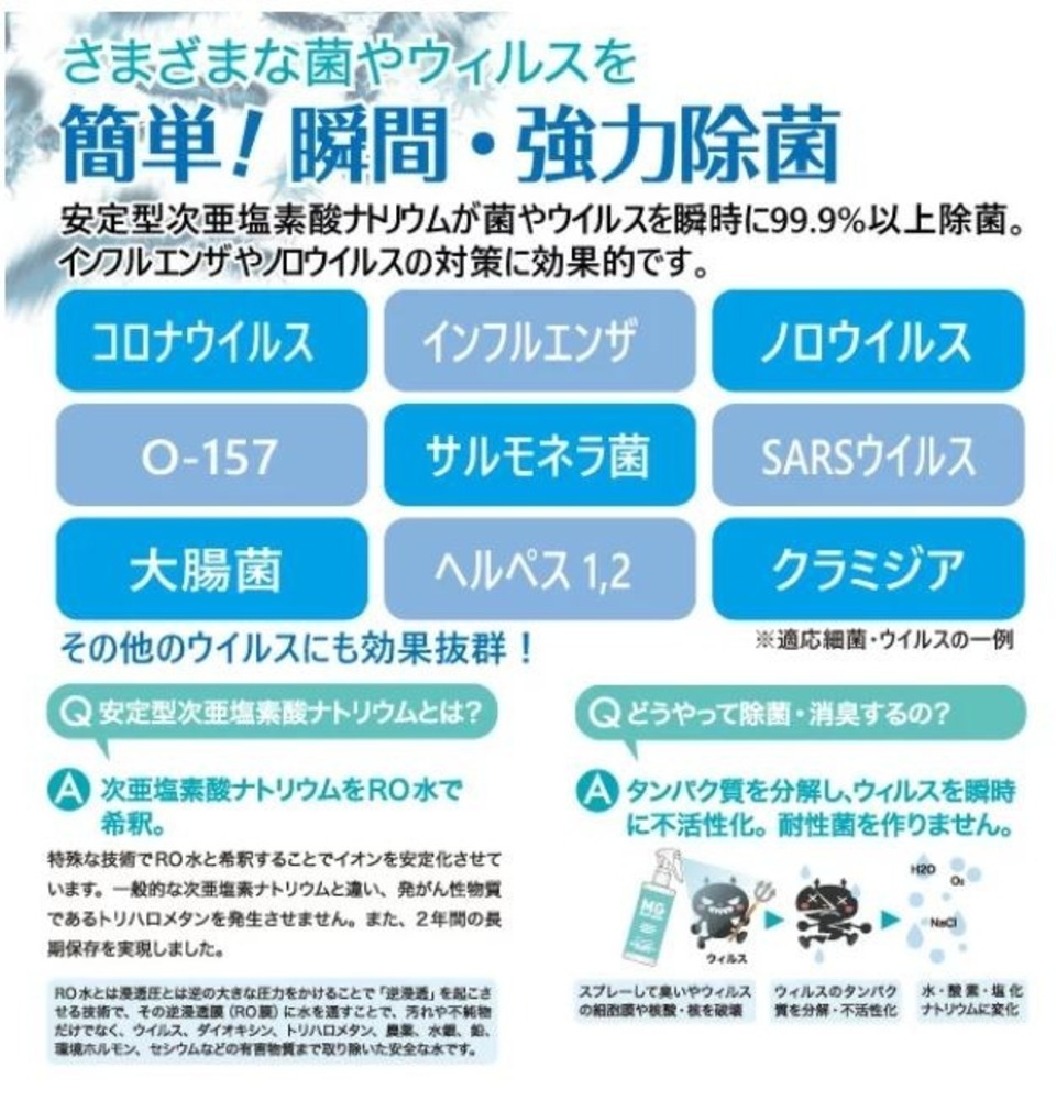 次亜塩素酸 瞬間消臭 99.9%殺菌