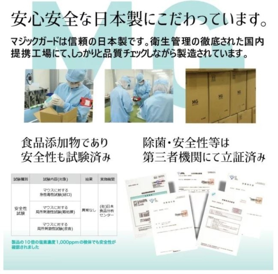 マジックガードは人にも環境にも優しい安全安心な除菌消臭ミストです。空間や様々な対象物にスプレーするだけでウィルスや菌、嫌な臭いを除去する理想のミストです。